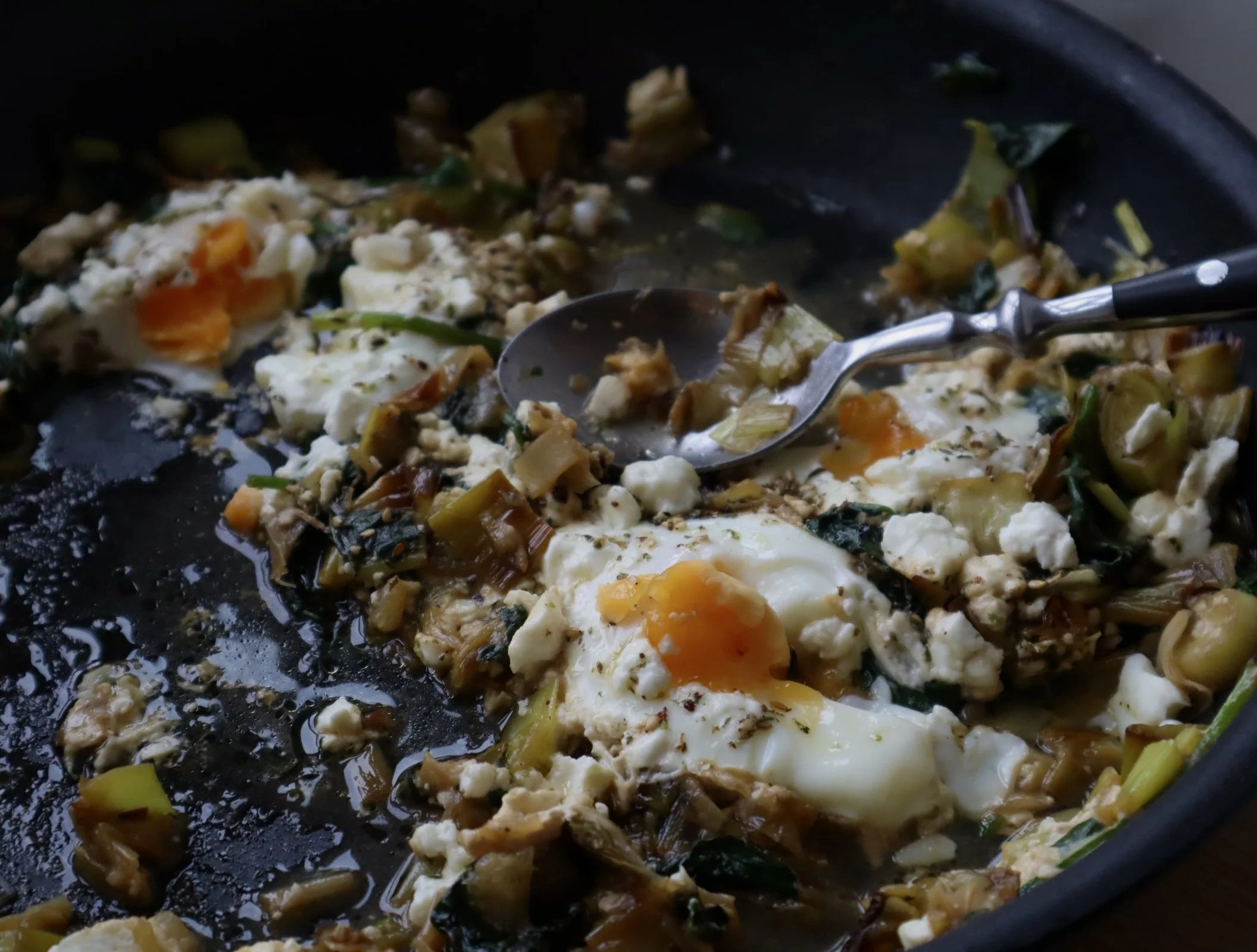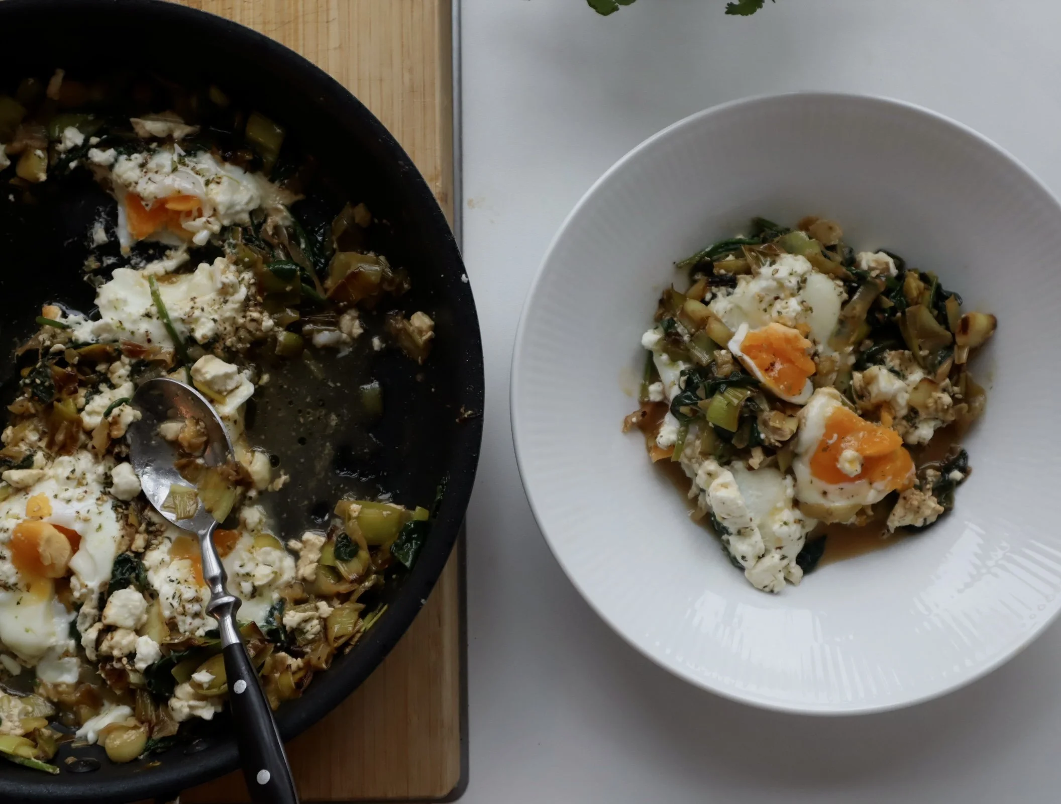 Jeg elsker brunchretter, der kan spille flere roller. Denne med dampede æg, porrer og za’atar er inspireret af en af Ottolenghis smukke og smagfulde opskrifter - og den leverer hver gang. Bløde æg, søde porrer og den aromatiske krydderiblanding gør retten enkel, men virkelig interessant. Og selvom den starter som brunch, så er den mindst lige så genial om aftenen, serveret med godt brød og et glas vin. Hverdagsluksus, der scorer på alle tidspunkter af dagen.