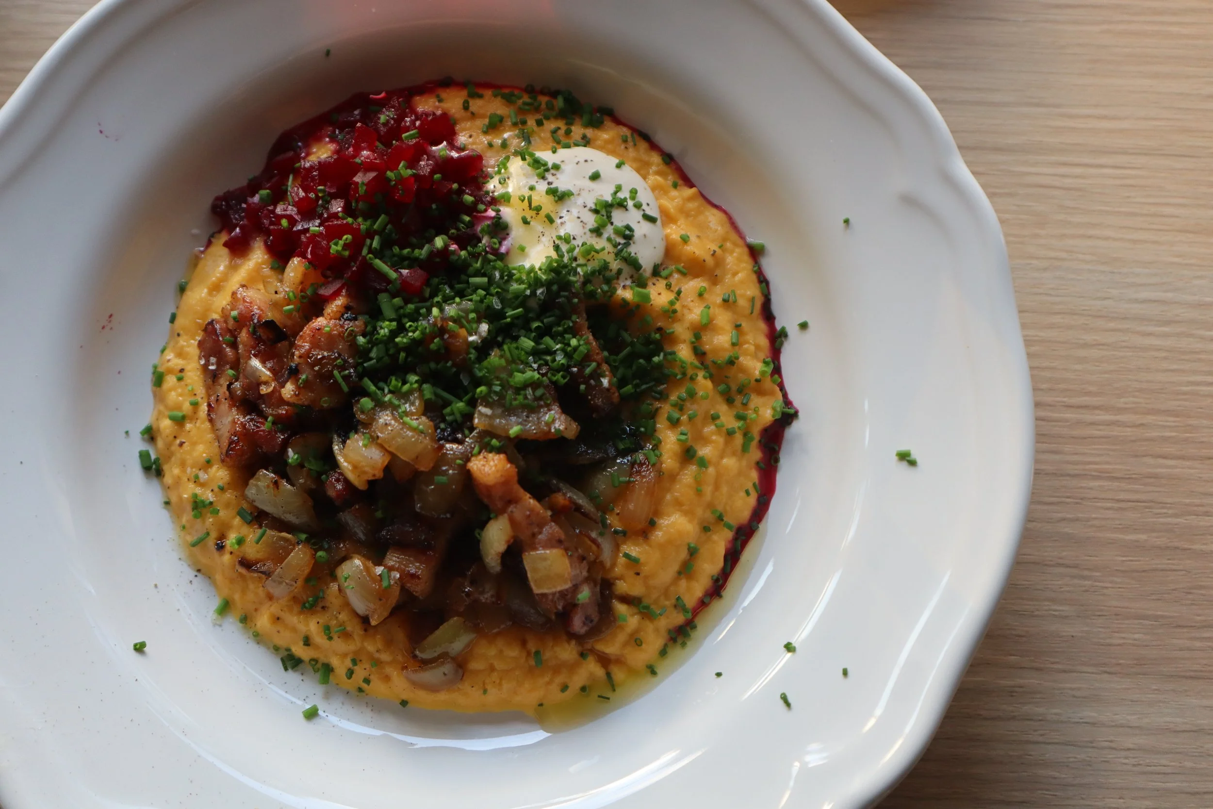 Brændende kærlighed kan sagtens imponere.. Grøntsagsmosen i bunden tilføjer både smag og farve, så retten bliver saftig, cremet og langt mere interessant end den klassiske version. Hver mundfuld er comfort food på sit bedste: varm, tilfredsstillende og bare rigtig lækker. Perfekt til de aftener, hvor hygge og smag skal gå hånd i hånd.