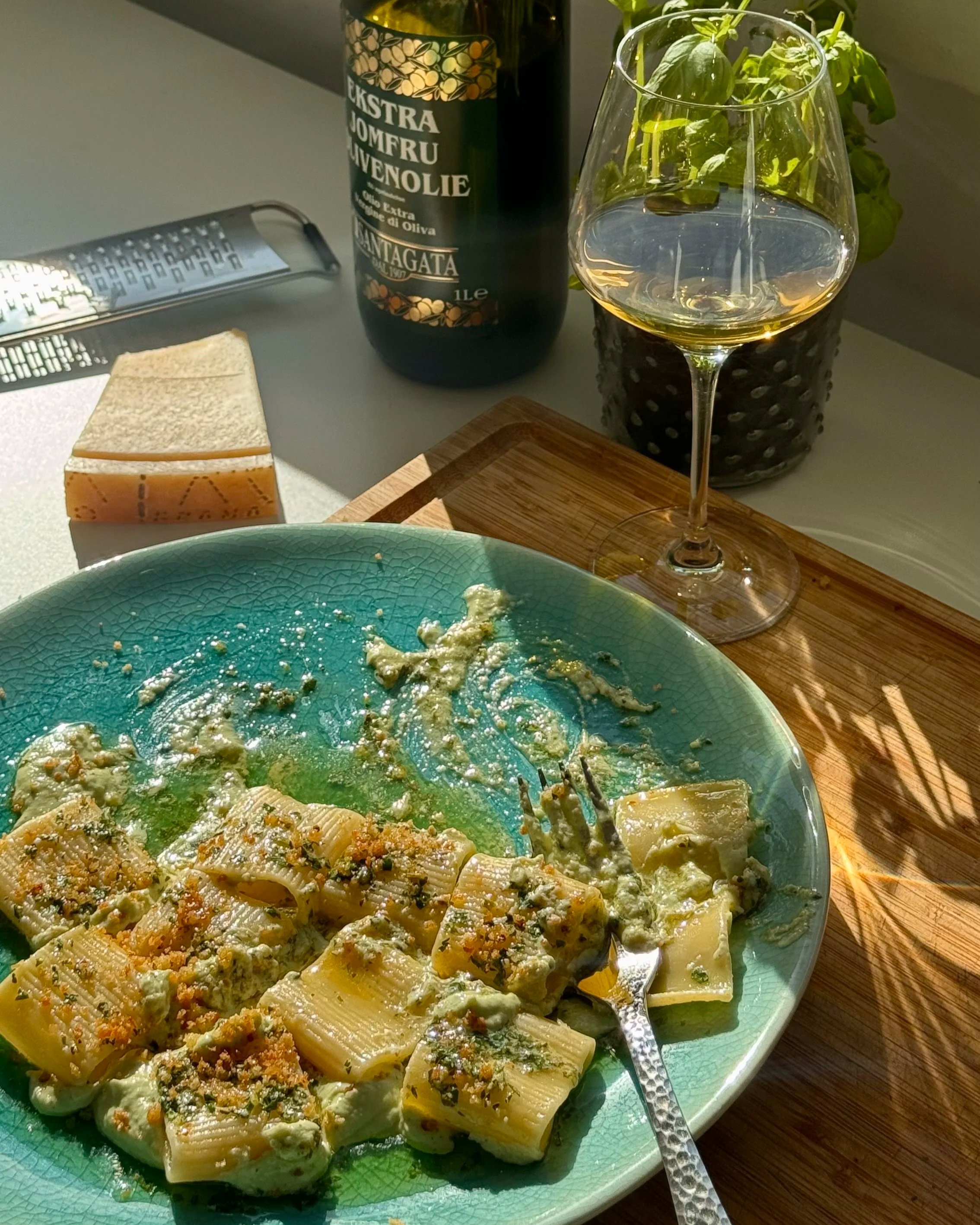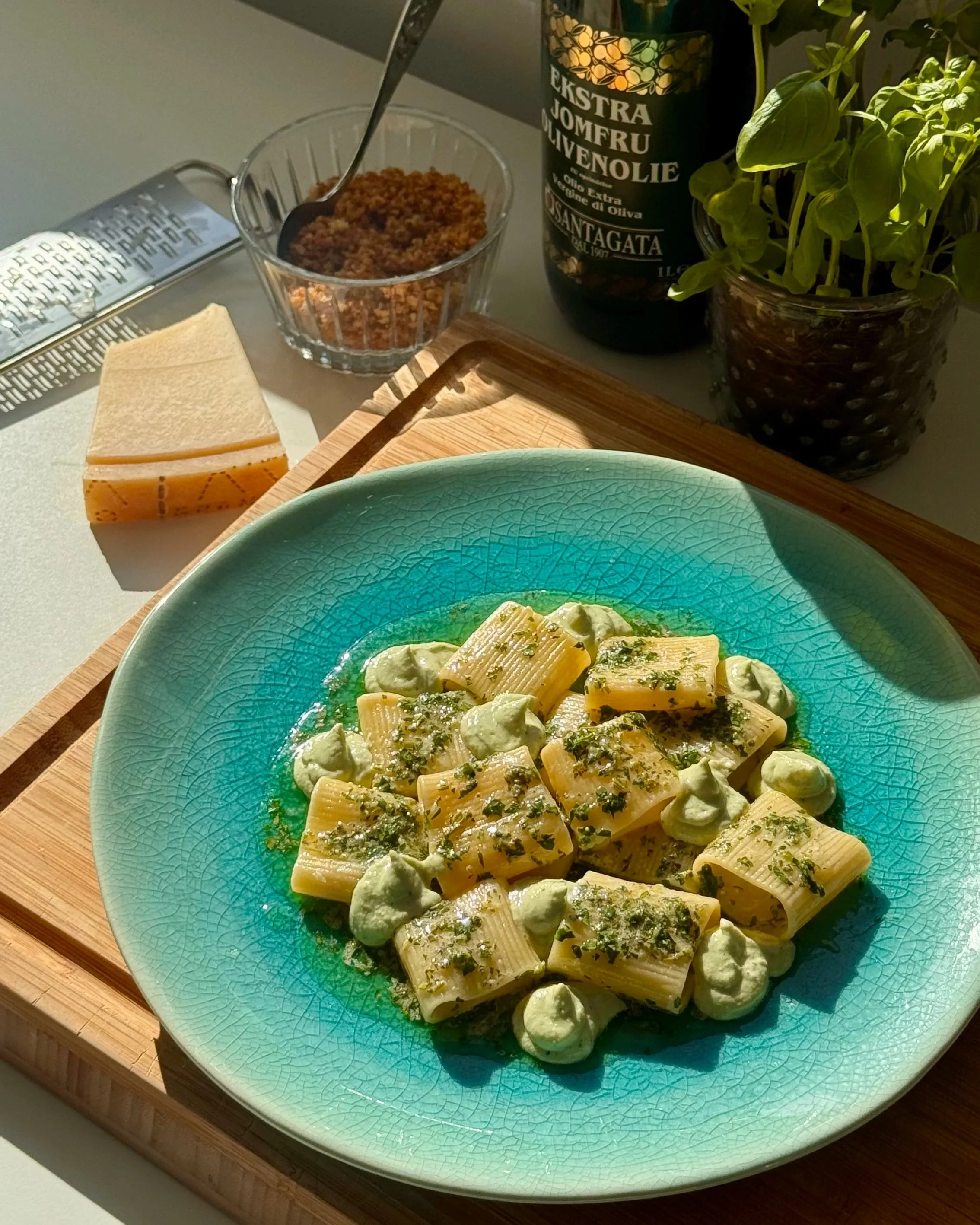 En lemon rigatoni som den her er en sikker forårs- og sommerret at diske op med, når du gerne vil imponere uden at gøre det besværligt. Smørsauce med urter, frisk citron og rigatoni vendt perfekt sammen - toppet med små dutter af cremet ricotta med urter og citron, der lige løfter det hele, serveres gerne med et koldt glas hvidvin.